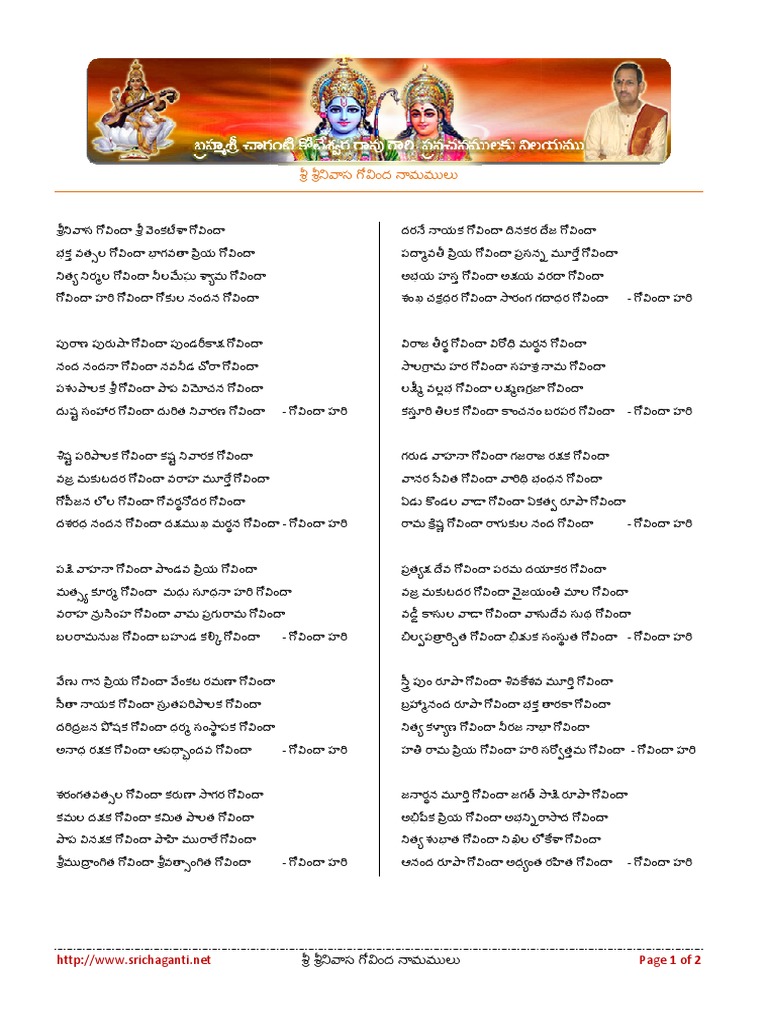 Pdf Govinda Namalu In Telugu